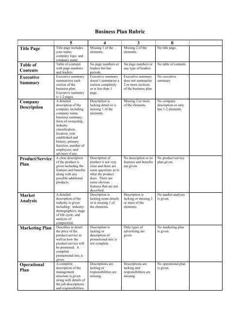 Idea is realistic mostly well planned and 1-2 sections of the business plan are NOT fully developed. Assurance of Student Learning. Web Download this Sample Business Plan Rubric Template Document - Google Docs Word Format.