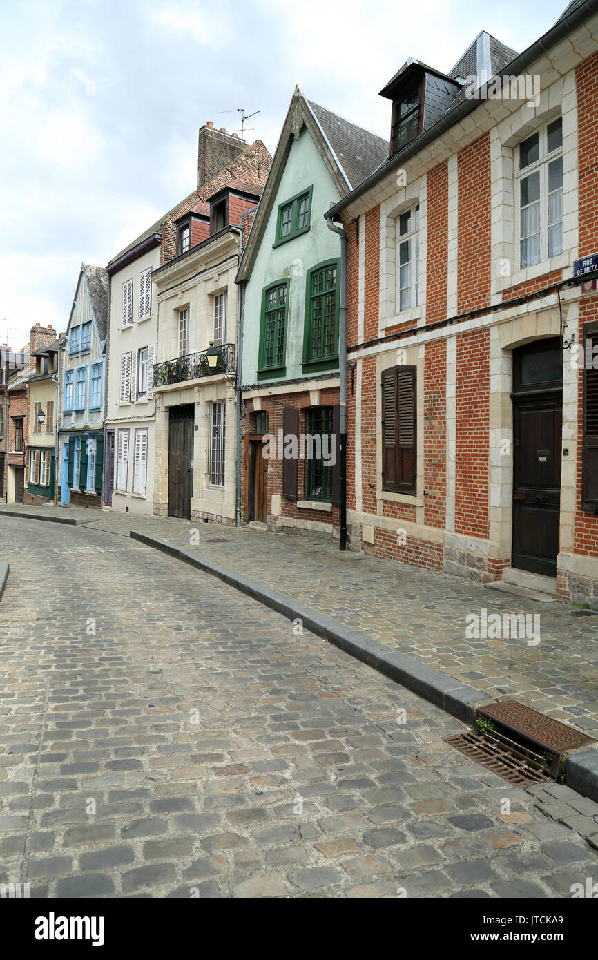 Strasse Mit Kopfsteinpflaster Und Traditionellen Stadt Gebaude In Der Rue De Metz L Eveque Amiens Frankreich Stockfotografie Alamy